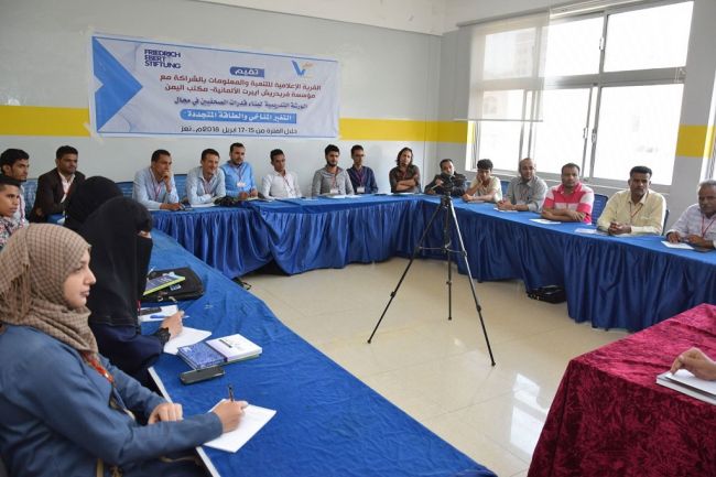 تنفذها القرية الإعلامية بالشراكة مع مؤسسة فريدريش آيبرت الألمانية بناء قدرات الصحفيين في مجال التغيير المناخي والطاقة المتجددة بتعز أقامت القرية الإعلامية للتنمية والمعلومات بالشراكة مع مؤسسة فريدريش ايبرت الألمانية- مكتب اليمن، ورش...