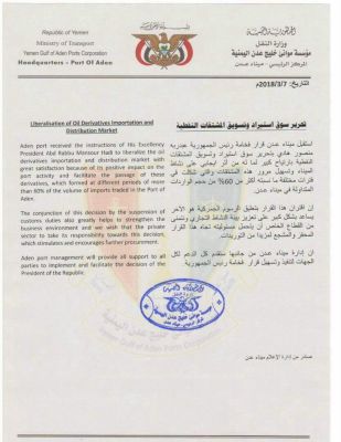 موانئ عدن تعلق على القرار الرئاسي في تحرير سوق المشتقات النفطية عبدالله الشرفي: أصدرت إدارة الإعلام في مؤسسة موانئ خليج عدن، بيانا، تناولت من خلاله حيثيات قرار...
