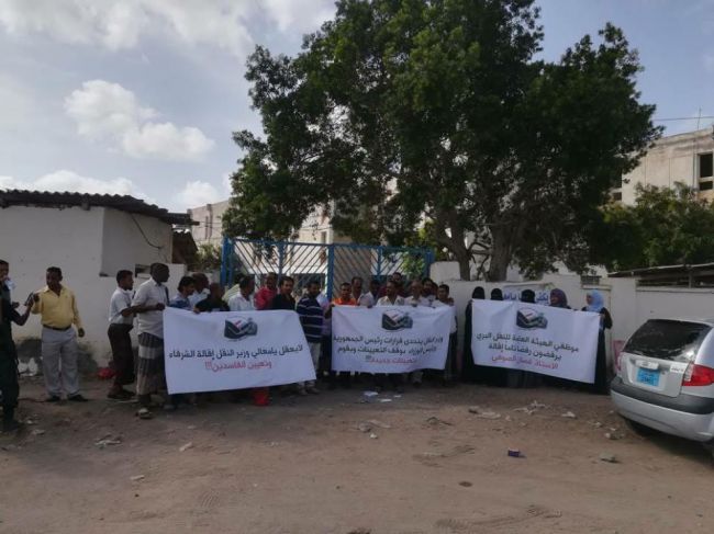 موظفي وعمال هيئة النقل البري عدن ينفذون وقفه احتجاجية اليوم الأحد نفذ عمال وموظفي مكتب النقل في عدن وقفة احتجاجيه ضد قرار مدير هيئه وتنظيم النقل بااقاله مديرهم الحالي...