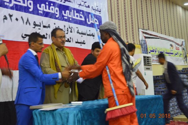 تكريم 200 عامل وعاملة من المبرزين بمأرب بمناسبة اليوم العالمي للعمال كرمت السلطة المحلية بمحافظة مأرب اليوم 200 عامل وعاملة من المبرزين في مختلف مواقع العمل والانتاج في...
