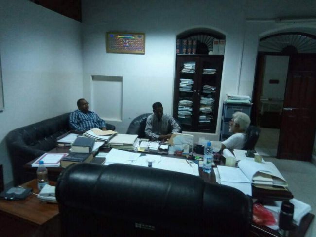 وكيل محافظة المهرة الشيخ بن عليان يناقش مع إعلاميي المحافظة قضايا الإعلام وترتيب عمله . ناصر الساكت : ناقش اجتماعا موسعا برئاسة وكيل محافظة المهرة الشيخ صالح محمد بن عليان وضم م...