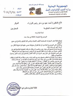 تجار السيارات يطالبون الحكومة بالسماح بشحن الحاويات الموجودة في ميناء جدة إلى عدن طالبت نقابة تجار السيارات المستخدمة الحكومة الشرعية بحل مشكلة الحاويات التي مضى عليها فترة طويلة في...