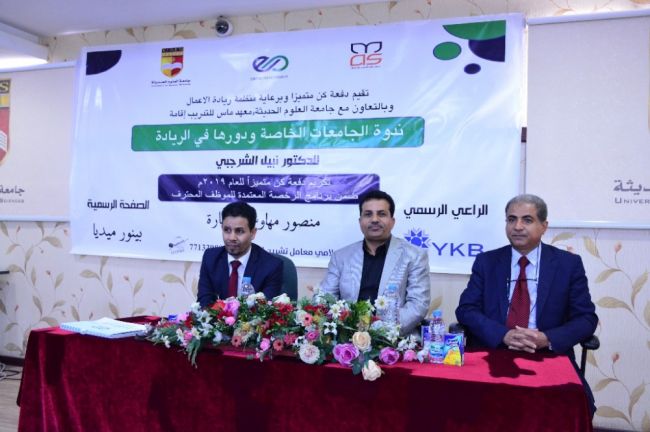 ندوة علمية تناقش دور الجامعات الخاصة في ريادة الأعمال أقامت دفعة كن متميزا بصنعاء ، ندوة علمية حول " دور الجامعات الخاصة في الريادة " في جامعة العلوم الحد...