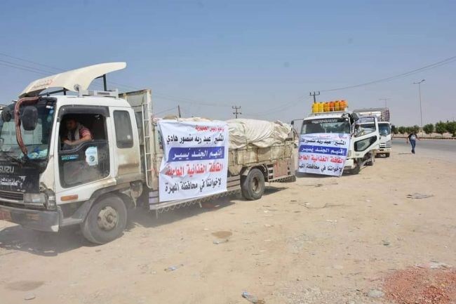 برعاية رئيس الجمهورية عبدربه منصور هادي ومتابعة واشراف محافظ تعز الدكتور أمين أحمد محمود دشن وكيل محافظة تعز المهندس رشاد الاكحلي صباح اليوم تسليم قافلة إقليم الجند الإغاثية للمتضررين بمحاف...