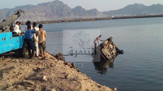عاجل : سقوط جرحى..هذا ماحدث قبل قليل في عدن حصل موقع التنمية برس على صورة يظهر فيها لحظة سقوط سيارة سنتافي الى البحر في الطريق البحري بعدن ...