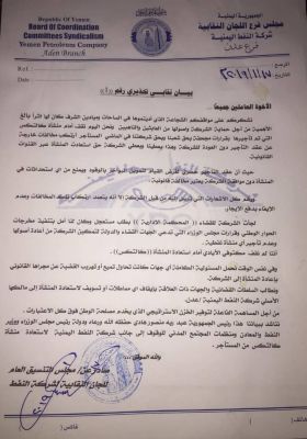 مطالب عمالية ونقابية باعادة منشأة كالتكس النفطية لشركة النفط في عدن اطلق مجلس تنسيق اللجان النقابية بشركة النفط اليمنية نداء تحذيري هام وجه من خلاله مناشدة عاجلة الى كل...