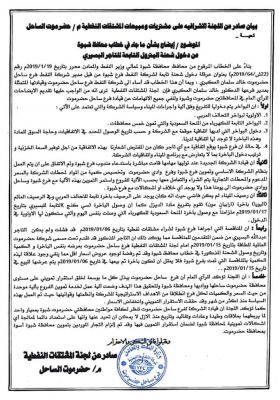 اللجنة النفطية بمحافظة حضرموت تدحض ماجاء في خطاب محافظ شبوة من اتهامات بحق فرع شركة النفط بالساحل