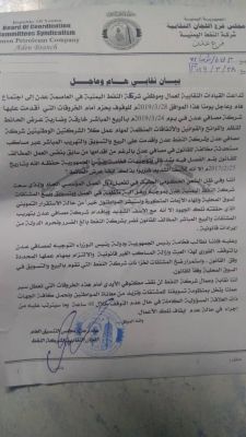 واكدت القيادات النقابية في بيانها ان اقدام مصافي عدن على تهريب المشتقات النفطية والبيع المباشر لها بشكل مخالف للقانون يضر بشركة النفط بالغ الضرر ويحرم الدولة من ايرادات قانونية.