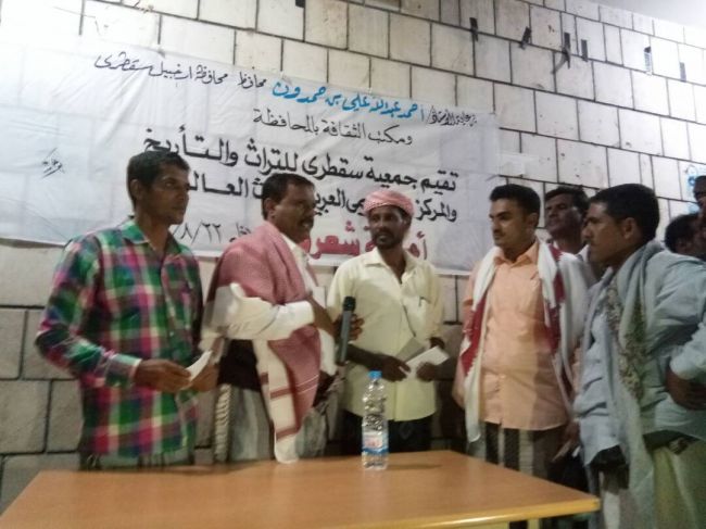 وثمن المحافظ السقطري جهود جمعية سقطرى للتراث والتاريخ وكذا لمركز الإقليمي العربي للتراث العالمي على جهودهم الدائمة في الحفاظ على اللغة السقطرية و إعادة الفعاليات الثقافية والفنية التراثية على ساحة المحافظة .
