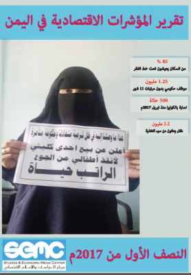 كشف مركز الدراسات والإعلام الاقتصادي في تقريره الصادر حول المؤشرات الاقتصادية عن تدهور الوضع الاقتصادي والإنساني في اليمن خلال النصف الاول من العام 2017 ، في ظل استمرار الحرب وانعدام الخدمات الاساسية كالكهرباء والماء والغذاء .