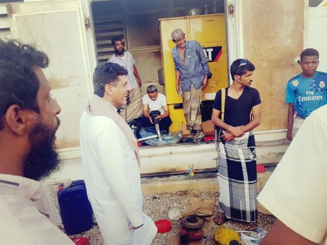 عيسى بن نهل : وجه الشيخ راجح سعيد باكريت محافظ محافظة المهرة مساء اليوم الثلاثاء الموافق 15 / 5 / 2018 م ب 1 ميقا واط لمحطة الكهرباء في مديرية حصوين وخزان مادة الديزل بسعة 40 الف لتر وسيارة طوارئ لمحطة الكهرباء في المديرية ، ويشرف على تركيب قطع غيار مولد سابق لتشغيل الكهرباء في المديرية خلال ال 24 ساعة لزيادة القدرة الإنتاجية للمنظومة الكهربائية .