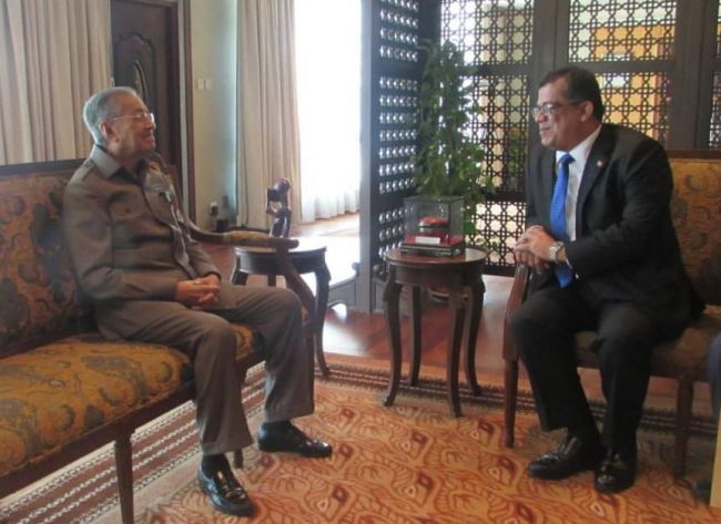 استقبل رئيس الوزراء الماليزي مهاتير محمد بالعاصمة الادارية بوتراجايا اليوم سفير بلادنا لدى ماليزيا الدكتور عادل محمد باحميد في زيارةٍ رسمية نقل خلالها رسالة خطية من فخامة الاخ الرئيس عبدربه منصور هادي رئيس الجمهورية الى دولة رئيس الوزراء الماليزي هنأه فيها على فوزه التاريخي في الانتخابات البرلمانية ووصوله الى منصب رئيس الوزراء السابع للمملكة الماليزية في عملية ديمقراطية كانت درسا عميقا في التبادل السلمي للسلطة.
