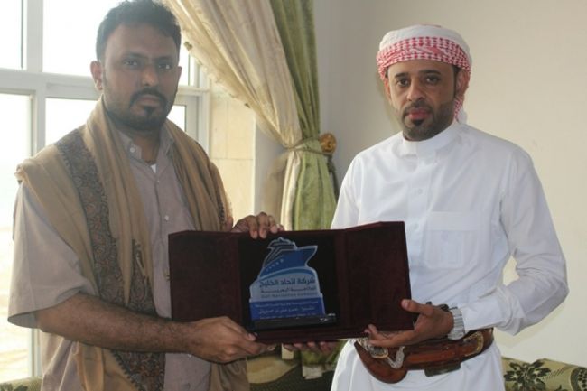 التقى الشيخ / عمرو بن حبريش العليي وكيل أول حضرموت بالأخ / عاطف محمد باشراحيل المدير العام لشركة اتحاد الخليج للملاحة البحرية والتخليص الجمركي بالمكلا وفي اللقاء استعرض المدير العام لشركة اتحاد الخليج الخدمات والإعمال التي ستقدمها الشركة لعملائها في مجال الملاحة البحرية والتخليص الجمركي وفتح خطوط ملاحية جديدة لتحسين وتطوير وتنشيط الحركة التجارية والاقتصادية بميناء المكلا وكذلك خدمات النقل العام للبضائع داخلياً وخارجياً لجميع التجار ورجال الإعمال والشركات التجارية في حضرموت .