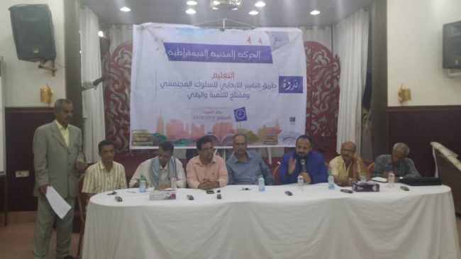 سماح امداد: نظمت صباح اليوم الحركة المدنية الديمقراطية في قاعة قصر التاج بمديرية المنصورة محافظة عدن ندوة حول " التعليم طريق التغيير الايجابي للسلوك المجتمعي ومفتاح للتنمية والرقي " استمرت ليوم واحد فقط بمشاركة كوكبة من وكوادر معلمي التربويين من مدراء مكاتب التربية الحكومية والأهلية منظمات المجتمع المدني والإعلاميين.