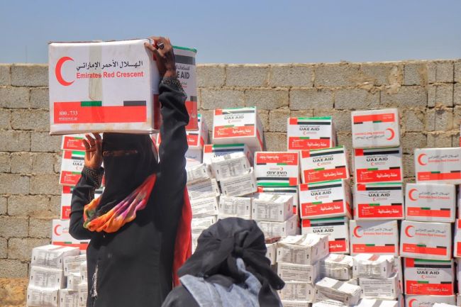 أطلقت دولة الإمارات العربية المتحدة حملة (مير رمضان) لتوزيع السلل الغذائية لأسر الشهداء والنازحين في المخيمات والأشد فقراً في جميع المحافظات اليمنية المحررة.
