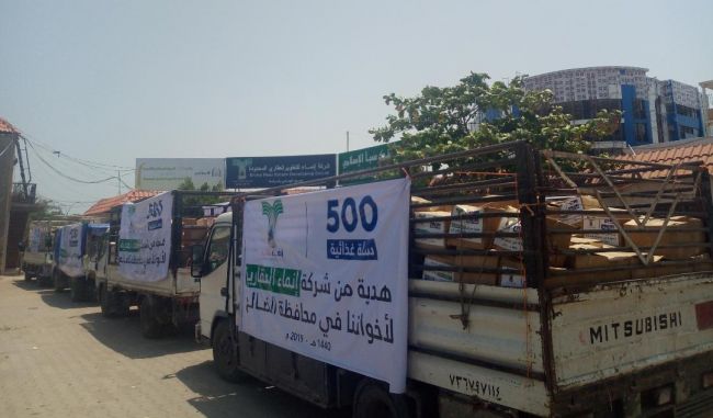 وتضم القافلة ٢٠ طن من المواد الغذائية موزعة على ٥٠٠ سلة غذائية جمتنوعة، هدية من الشركة لابناء المناطق الحدودية في محافظة الضالع، والتي تشهد أزمة إنسانية جراء المعارك المحتدمة التي تشنها مليشيا الحوثي على المحافظة منذ اشهر.