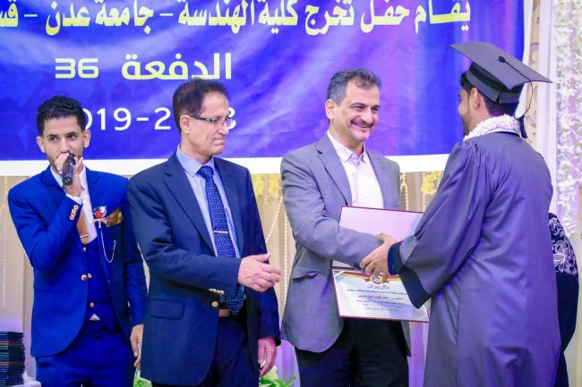 سليمان الطحطوح/ شهد الأستاذ /احمد حامد لملس الأمين العام للمجلس الانتقالي الجنوبي،اليوم (الأحد) الموافق 20 أكتوبر 2019 حفل التخرج الذي اقامتة كلية الهندسة بجامعة عدن، بمناسبة تخرج الدفعة 36 لطلاب كلية الهندسة قسم الميكانيك ( عام ) وعددهم (75), وبحضور الأستاذ /فضل الجعدي مساعد الأمين العام والمحامية/نيران سوقي عضو هيئة الرئاسة في المجلس الانتقالي والاستاذ /مؤمن السقاف رئيس دائرة الشباب والطلاب والمحامية/ ذكرى معتوق رئيسة دائرة حقوق الإنسان والاستاذة/اشتياق محمد سعد رئيسة دائرة المراة والطفل، وهيئة التدريس بكلية الهندسة وعدد كبير من الطلاب وعائلات الخريجين وأصدقائهم.