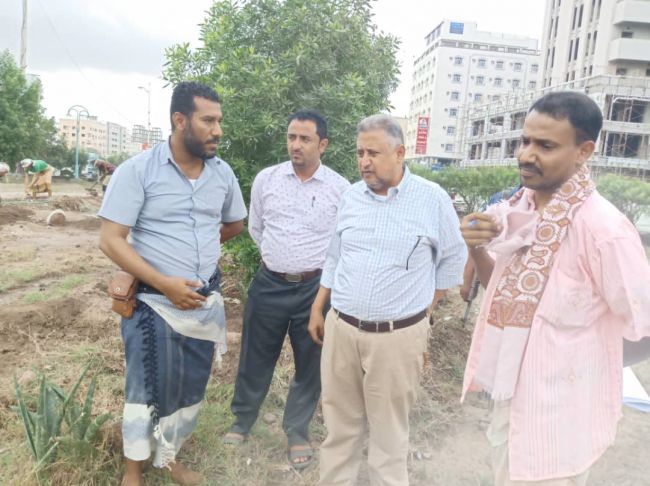 محمد القادري : تفقد المدير العام التنفيذي لصندوق النظافة والتحسين بمحافظة عدن ، المهندس قائد راشد أنعم ، أعمال التشجير والتزيين في عدد من شوارع مديريات المحافظة .