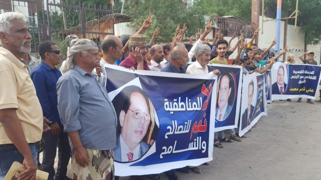 وادلى رئيس الحملة الشعبية هشام الحاج بتصريح ل التنمية برس :نظمنا صباح اليوم الخميس الوقفة الاحتجاجية الاولى للتضامن مع الرئيس السابق علي ناصر محمد.