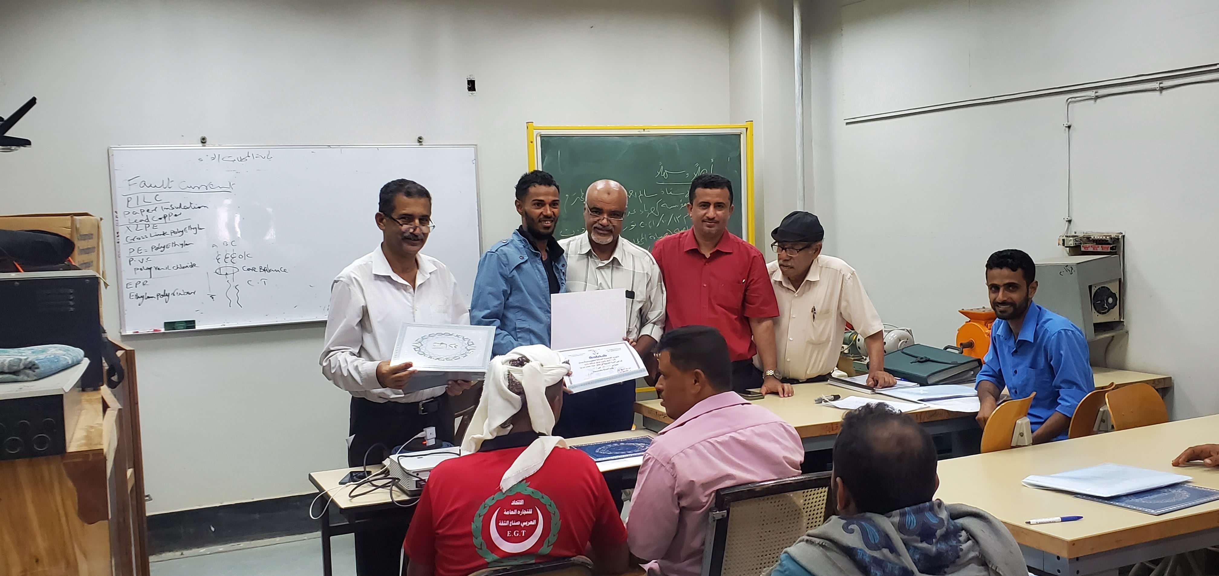 وكرم مدير عام كهرباء عدن ونائبه للشؤون الفنية المهندس أحمد بن عفيف المشاركين في الدورة والمدربين بشهائد تقديرية في ختام الورشة .