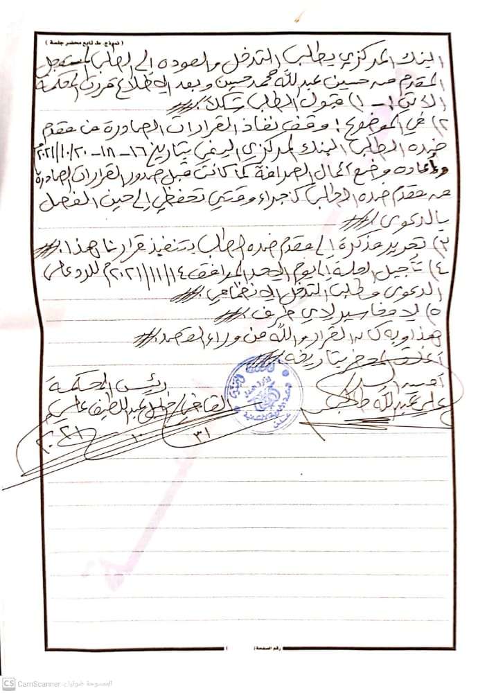 ٤- تأجيل الجلسة إلى يوم الاحد الموافق ١٤/ ١١/ ٢٠٢١م للرد على الدعوى وطلب التدخل الانظمامي.
