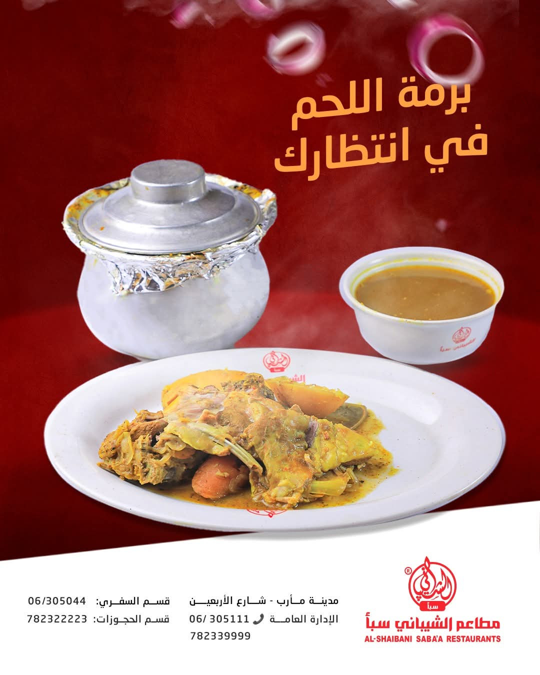 وفي وسط مدينة مأرب، حيث يلتقي عبق التاريخ بفرص الحاضر، تواصل مطاعم الشيباني سبأ ترسيخ مكانتها كخيار أول لكل زائر وسائح يبحث عن تجربة طعام متكاملة. فمنذ انطلاقتها وهي تضع الجودة والنظافة في صدارة أولوياتها، لتقدّم وجبات يمنية وعربية أصيلة بمذاق رفيع وأسعار مدروسة تناسب جميع الفئات.