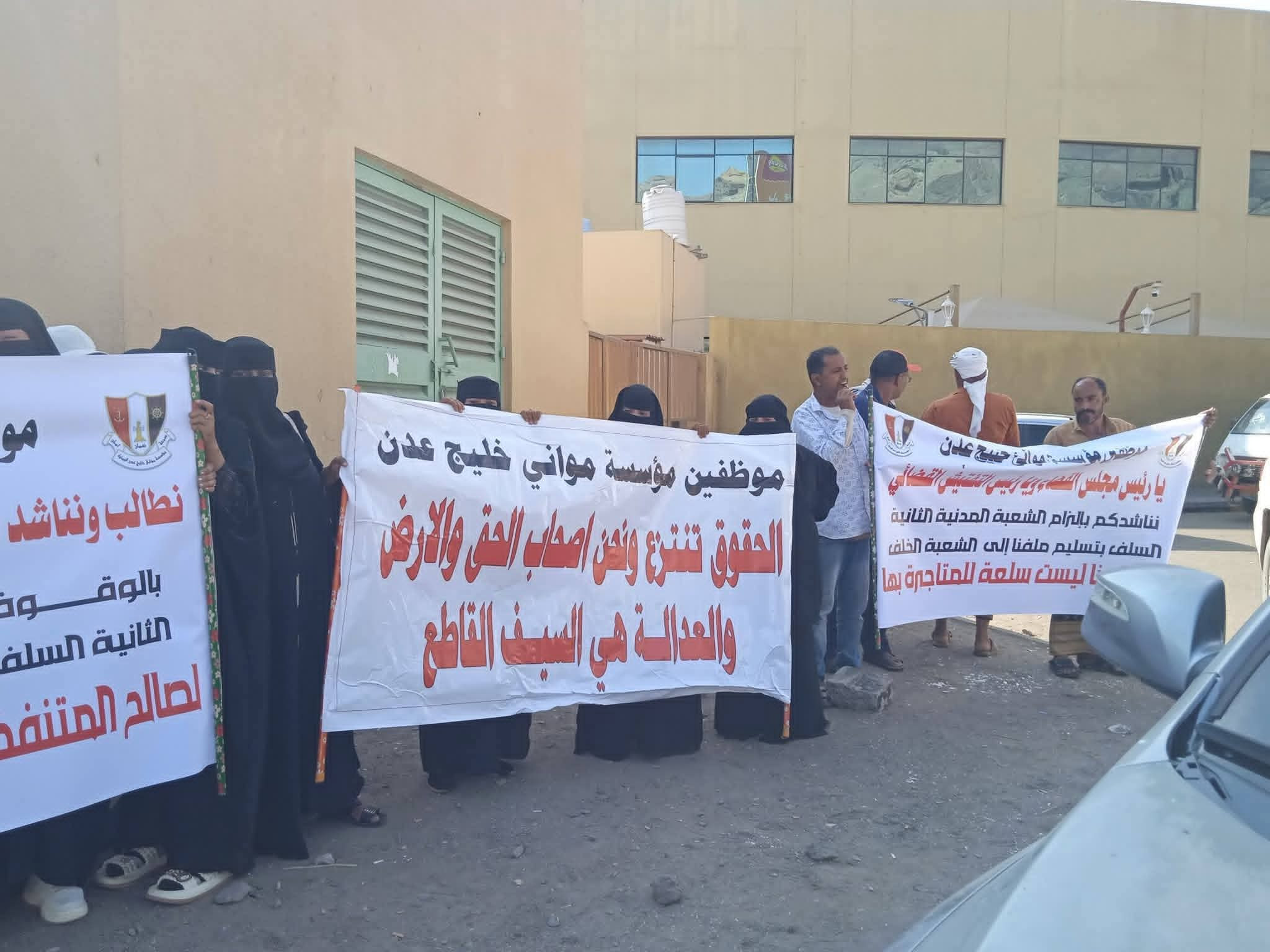 وجدد المحتجون من عمال وموظفات مؤسسة موانئ خليج عدن تأكيدهم على استمرار وقفاتهم الاحتجاجية السلمية حتى إنصافهم الكامل في قضية الأراضي التعويضية، ووضع حد لأي تلاعب أو استحواذ غير مشروع على حقوقهم القانونية، مؤكدين أن هذه الأراضي حق مشروع لهم ولأبنائهم.