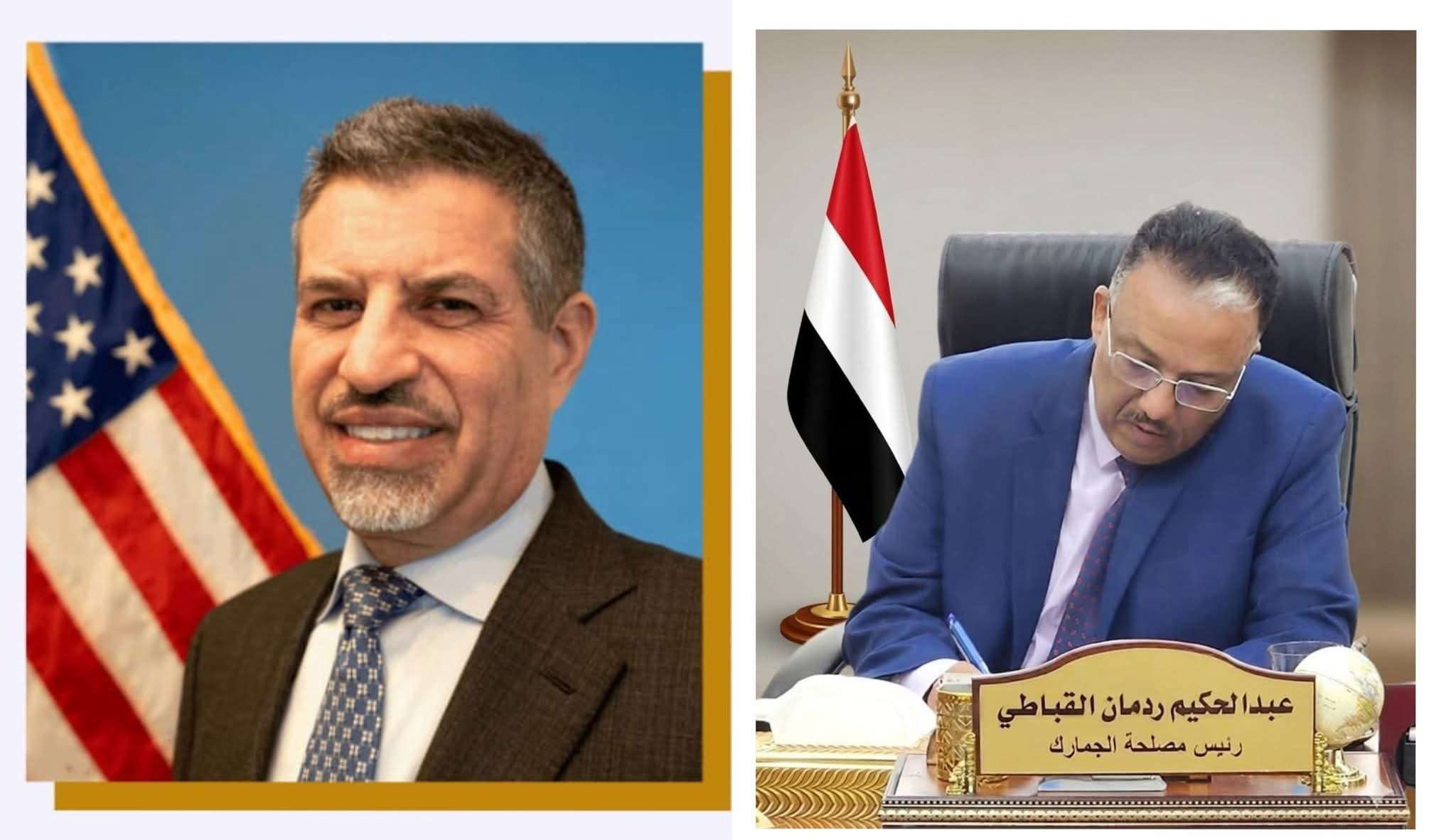 واستعرض الجانبان، خلال اللقاء، فرص التعاون بين مصلحة الجمارك اليمنية و الحكومة الامريكية، خصوصاً في مجالات البنية التحتية، ودعم برامج بناء القدرات التي تستهدف تحسين اجراءات العمل الجمركي وتسهيل التجارة ورفع كفاءة موظفي الجمارك بما من شأنه تعزيز الإيرادات الجمركية والضريبية وزيادتها.